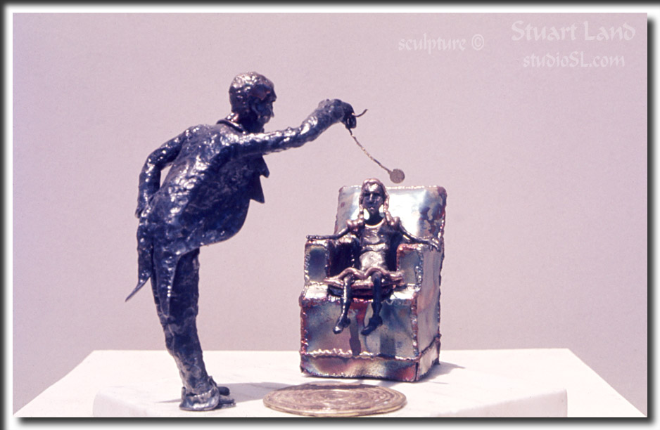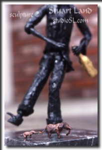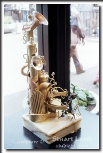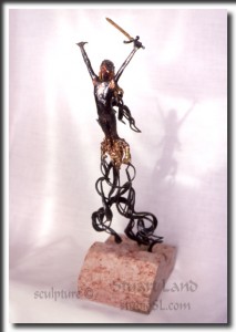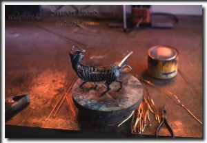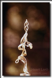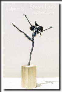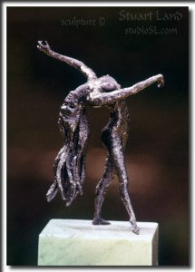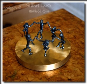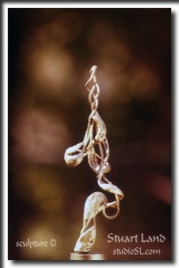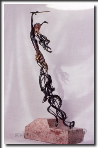 Soon after I began, I made the decision to only use the torch to create my forms. By combining metals, melting and twirling them in and about the figures, only color and texture were evident in the finished piece. In less than a year I was able to create a sculpture in metal that appeared to have been cast in a foundry.