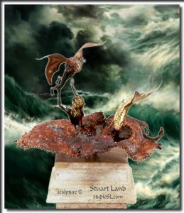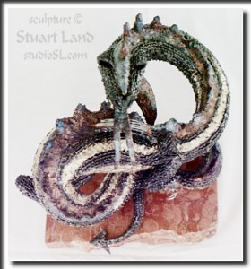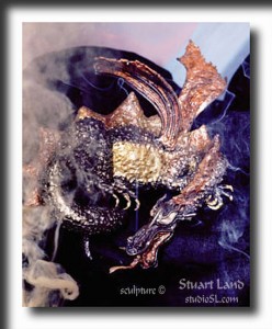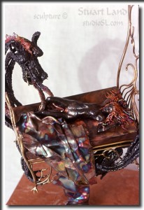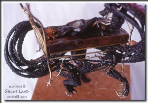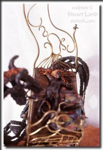 All the dragons are made of steel, bronze, copper, with nickle-silver claws. Back in the days I made these creature, dragons still had a strong bent in the fantasy realms, and weren’t as nasty as they are today.